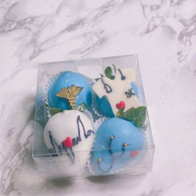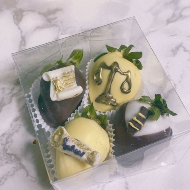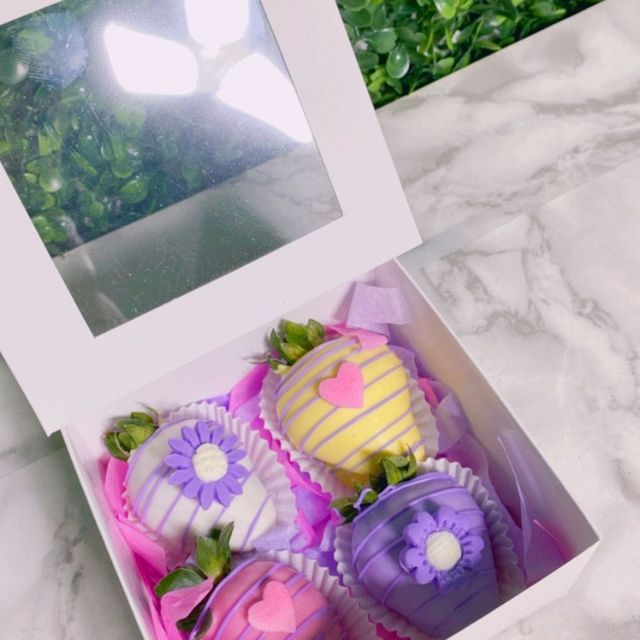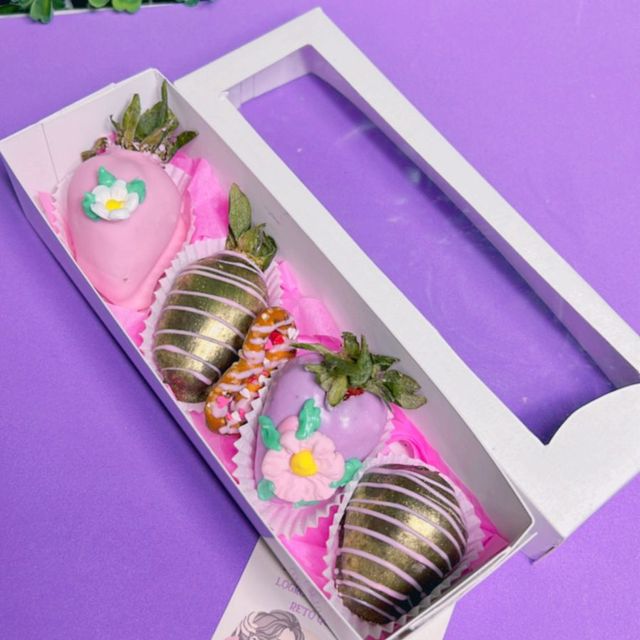 Cajita de 4 fresas con chocolate