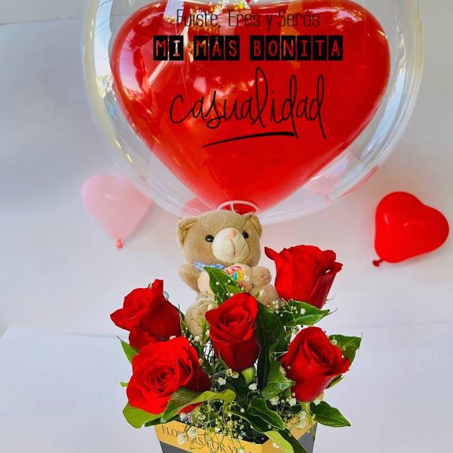 Para la mujer de tu vida: rosas, osito y globo personalizado