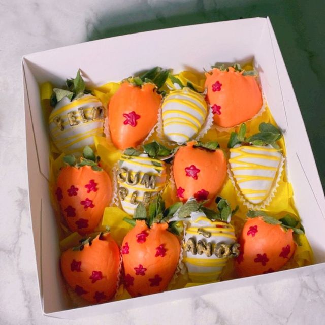 6 fresas con chocolate o gomitas